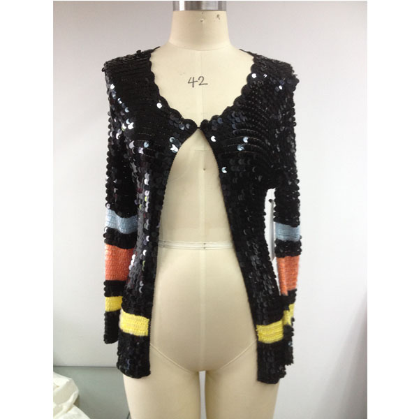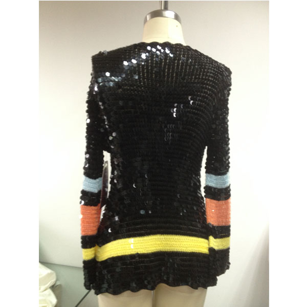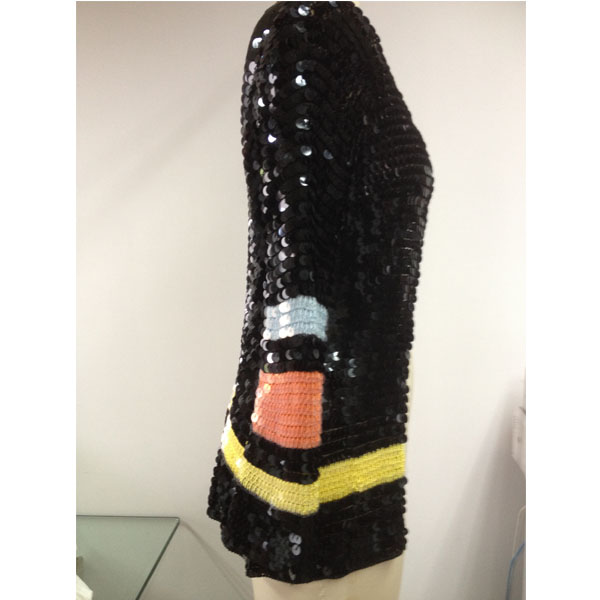 產(chǎn)品號:T001-3珠片上衣服裝加工 可選顏色:圖片色 可選尺碼:SX、S、M、L 適合季節(jié):秋季 風(fēng)格:only 描述:無數(shù)黑色的珠片連接而成,猶如漫天閃耀的繁星,閃閃發(fā)光,讓你成為人群中亮眼的一抹! |